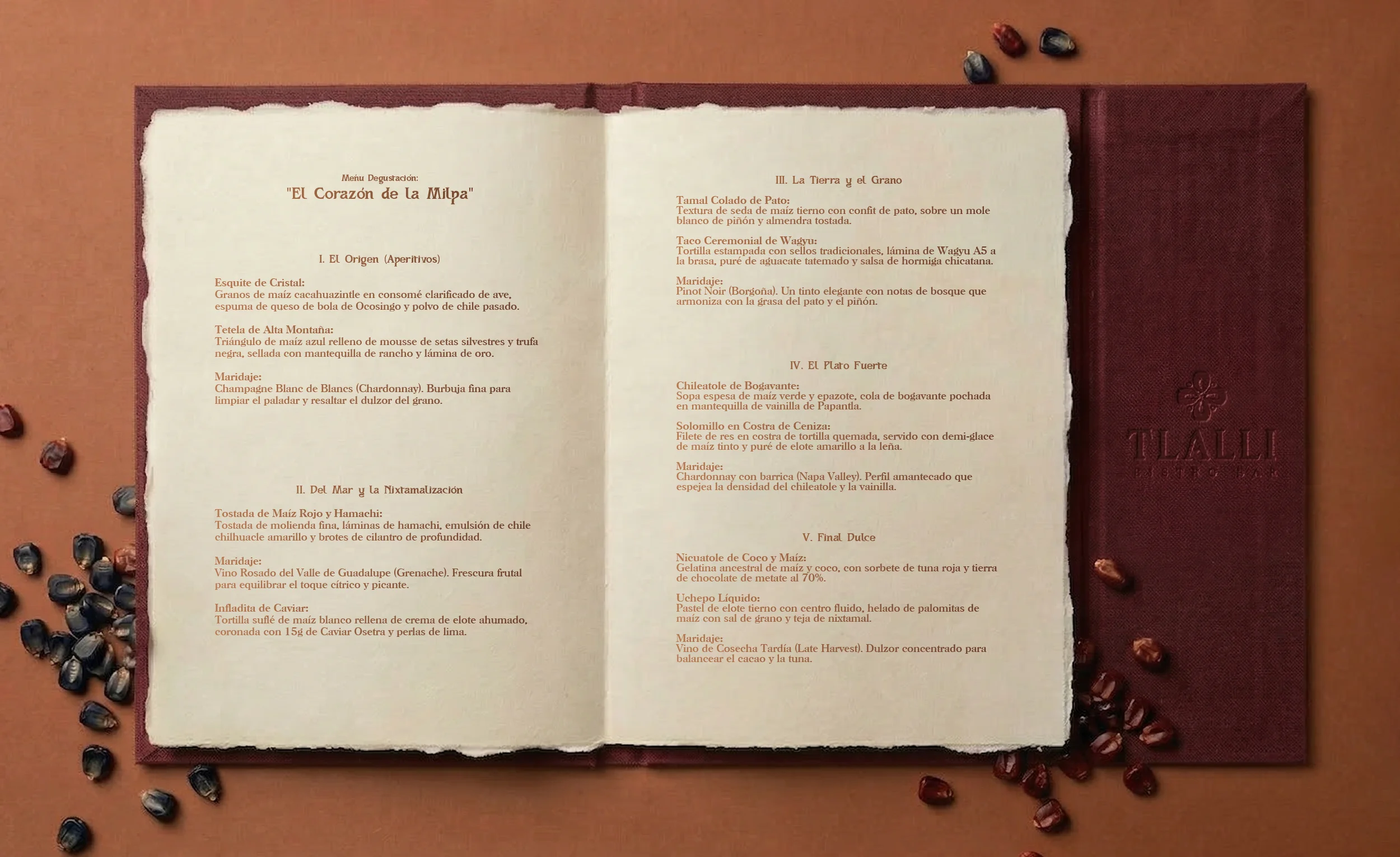Un Bistro Bar de cocina de autor que materializa la herencia ancestral mexicana con una sofisticación implacable, imponiendo un pacto entre la tierra y el comensal en cada formato. Para materializar este ritual, desarrollamos una identidad integral, construyendo su universo desde la raíz: naming, logotipo, branding integral, diseño de menús y papelería de lujo, packaging premium y toda la dirección de arte para el restaurante.